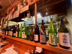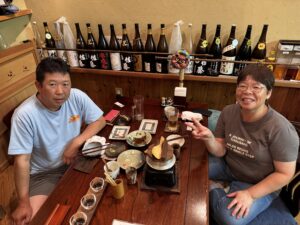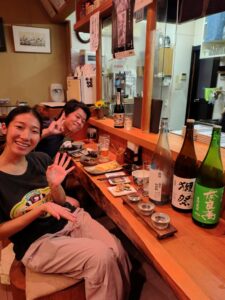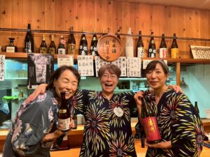 30種類位の日本酒を並べての飲み比べ会です。盛り上がること、知らない方々もすっかり一つになり、楽しみました。